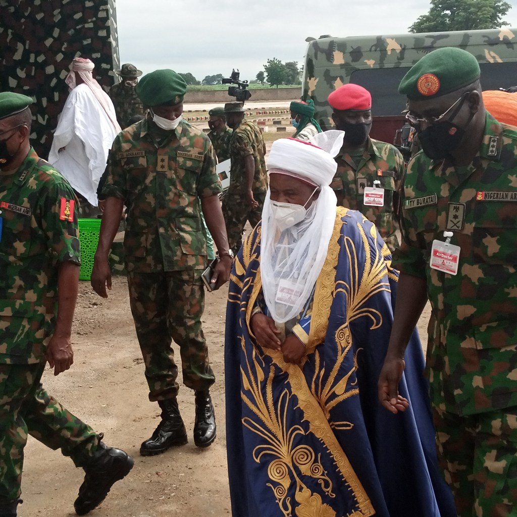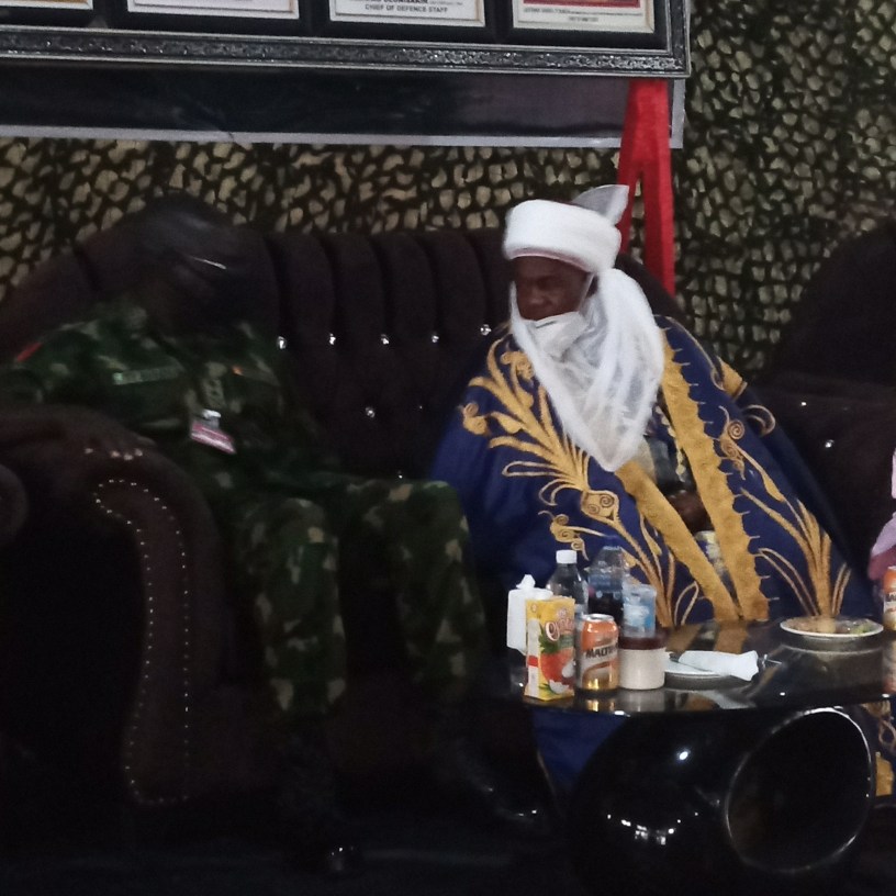 As part of the efforts by the Nigerian Army to defeat banditry in the North West, and in the spirit of Civil-Military Cooperation, the Chief of Army Staff Lt Gen TY Buratai has received, – His Royal Highness the Sarkin Katsinan Gusau/ Emir of Gusau Alh Dr Ibrahim Bello as a Special Guest of Honour at the Nigerian Army Special Super Camp 4 Faskari, in Katsina State on Friday August 14, 2020.
