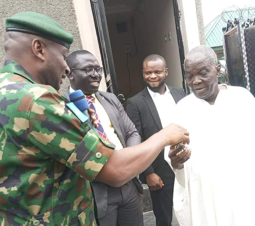 One of the ejected tenants of Kabala Costain Housing Estate, RSM Paul Ojo pour encomiums on President Muhammadu Buhari for the ‘gift of life’ presented to him by General Yusuf Buratai the Chief of Army Staff.